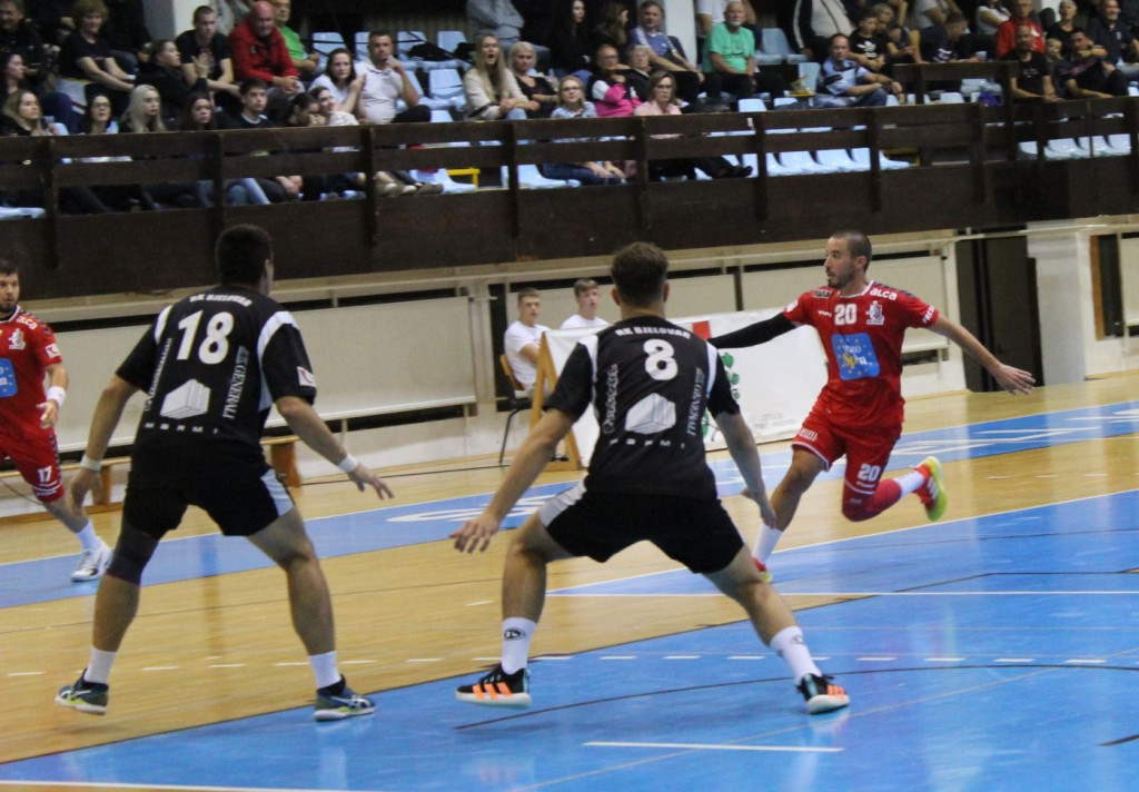 Iako je trener Lovrinović u Bjelovar krenuo bez Matije Cara i Petra Krupića, uz još neke druge probleme, Poreč je vrlo dobro krenuo u susret i poveo preko Matije Rađakovića. Bjelovar je ubrzo izjednačio i utakmicu držao u egalu sve do 16. minute kada su naši igrači pojačali tempo. Par obrana Davida Vladića i 4-0 serija golova odveli su Poreč na 13:9 u 20. minuti. Čvrstim izdanjem u obrani nastavili su se problemi za domaću momčad, a porečki sastav na poluvrijeme je otišao pri vodstvu 18:12.
