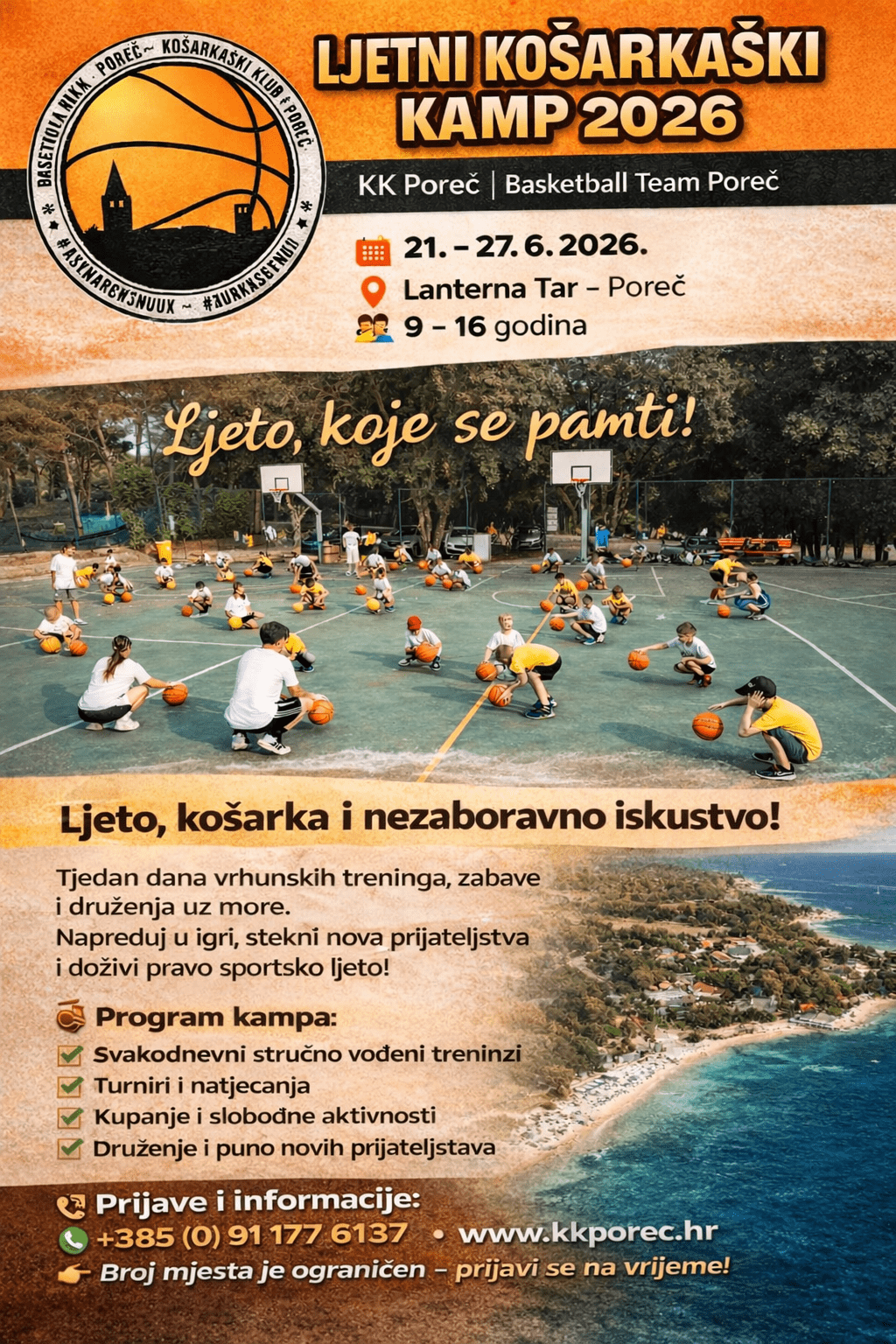 LJETNI KAMP KK POREČ 2026. OD 21. DO 27.6.2026.-REZERVIRAJ VEĆ SAD SVOJE MJESTO-PRIJAVI SE!