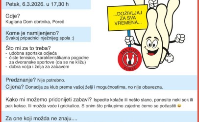 U petak, 6. ožujka 2026. u 17:30 sati u Kuglani Dom obrtnika u Poreču održat će se rekreativni kuglački turnir „Dan žena na kuglani“.