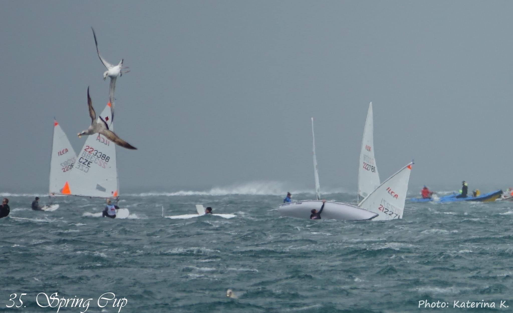 Dok su se optimisti na jugu borili po jugu na samome sjeveru Istre u Izoli odvijao se 35. Izola spring cup. Ova regata ujedno bila je i priprema regata za Europsko prvenstvo koje će se održati sljedeći tjedan na istome mjestu. Na Spring Cup-u se okupilo 97 jedriličara klase ILCA 4. Prva dva dana se jedrilo po slabom vjetru i uspješno je održan po jedan plov. Zadnji dan jako jugo uspjelo je probiti i do sjevera te sa refulima jačim i od 25 čvorova jedriličarima zadavalo prave muke zbog čega je bilo puno prevrtanja.