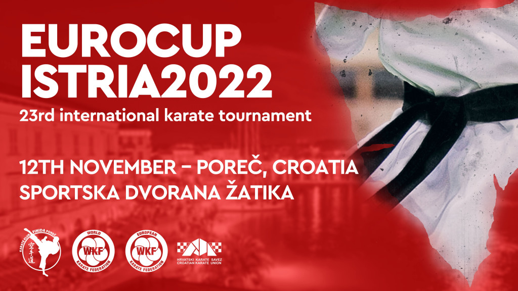 Ove subote, 12.11.2022. u dvorani ”Žatika” u Poreču, od 10.00 – 20.00 sati u organizaciji Karate kluba ‘’Finida’’ iz Poreča, održati će se 23.EUROCUP ISTRIA 2022., međunarodni karate turnir u borbama i izvođenju kata, od najmlađeg uzrasta pa do seniora i veterana.