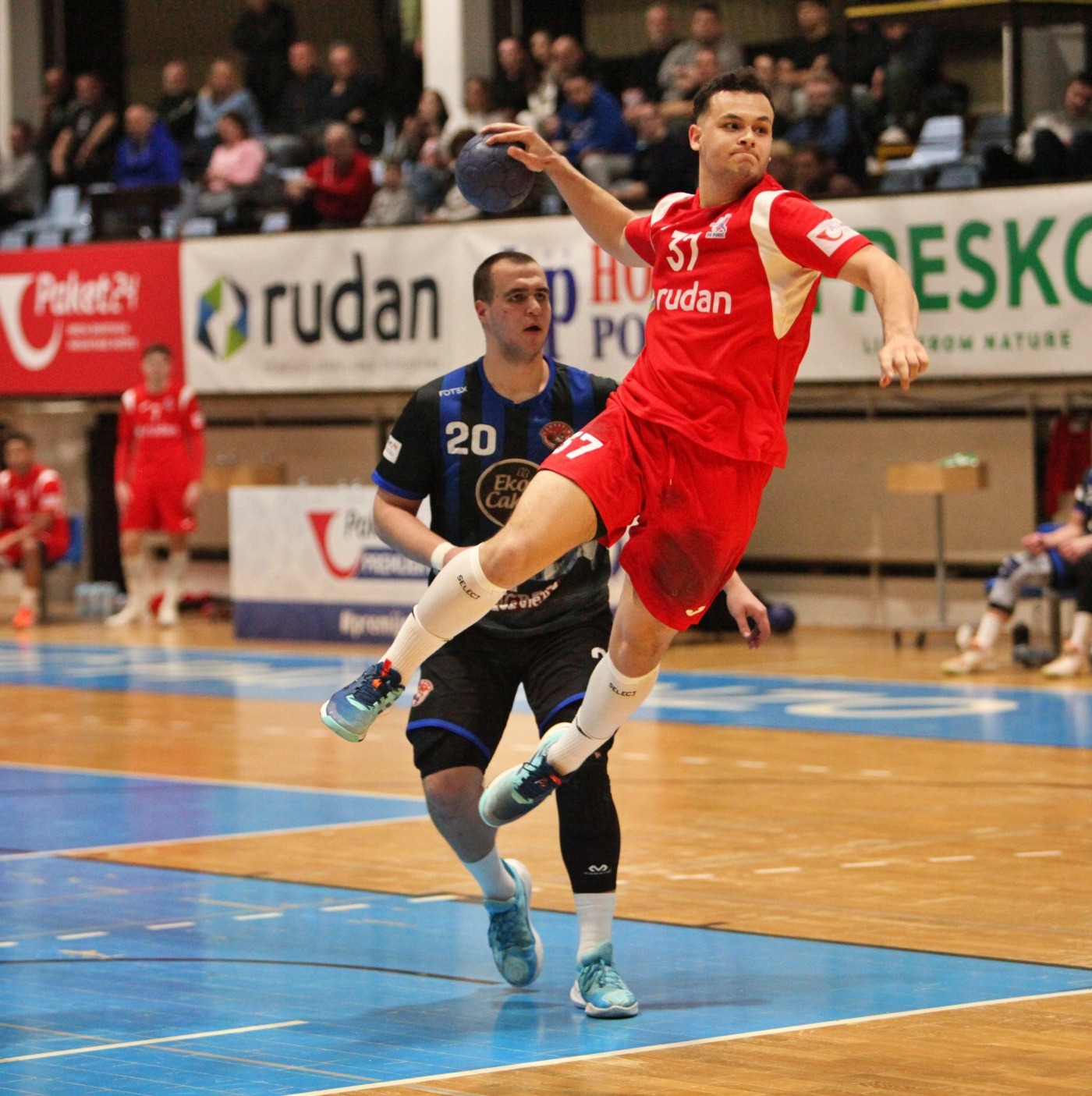No, Poreč je prebacio u višu brzinu sredinom prvog dijela i tu se slika počela mijenjati. Razbranio se Bruno Ćopić i svojim obranama dao vjetar u leđa, obrana Poreča podigla se na višu razinu, a iz takvog ritma stiglo je i izjednačenje. Teo Popović zabija za 8:8 i od tog trenutka Poreč je preuzeo kontrolu. Ubrzali su domaći igru, obrana je bila čvrsta, a napad sve konkretniji. Od rezultata 9:9 stvorila se serija 7-0 kojom su se Porečani odvojili i praktički riješili pitanje prvog poluvremena.