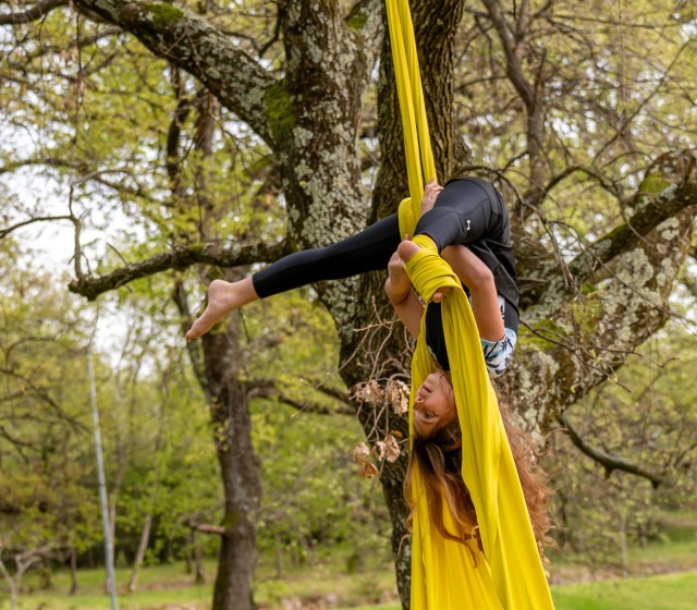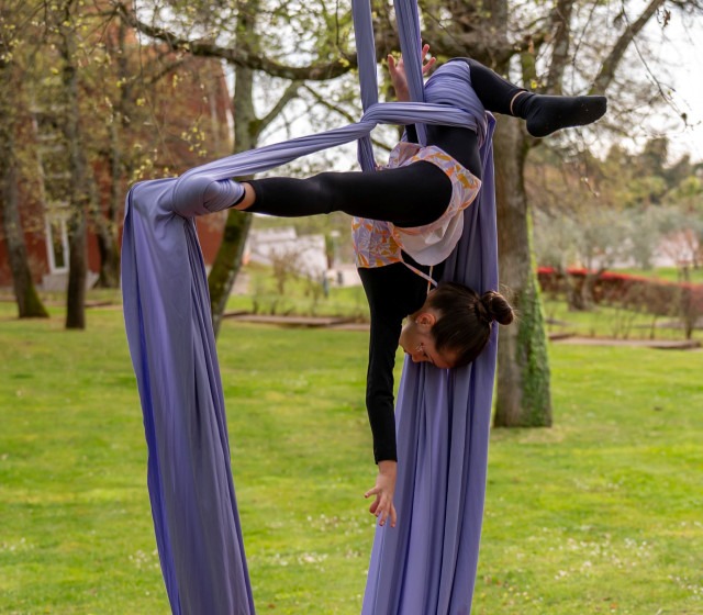 Travanj je obilježio i prvi ovogodišnji ARIJIN nastup na otvorenom, u Zelenoj Laguni uz hotel Albatros, čijem se vodstvu kao i turističkoj tvrtki Plava laguna zahvaljuju na susretljivosti i ustupljenom vanjskom prostoru. U sugestivnom ambijentu pod krošnjama stabala plesačice su izvele deset točaka inspiriranih cvijećem, predstavivši elemente penjanja visoko po šarenim svilenim trakama, preokreta naglavačke, rada na fleksibilnosti u zraku te spoj akrobatike i plesno-scenskog izraza koji ovu disciplinu čini sve prepoznatljvijom i atraktivnijom. Srdačnim aplauzima i navijanjem nagradili su ih članovi obitelji, prijatelji i gosti, a događaj je zabilježila fotografkinja Ana Stupar.