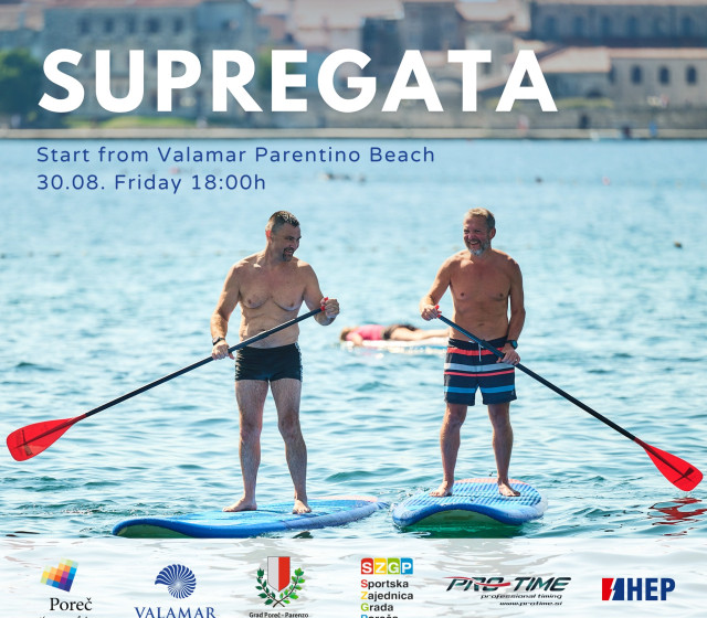 Kao relativno nov, ali iznimno popularan sport, standup paddleboarding poznatiji kao SUP, nudi priliku svim sudionicima da uživaju u veslanju kroz prekrasan porečki akvatorij. Ova regata na rasporedu je u petak 30.8. od 18 sati. Regata je otvorena za sve razine, od početnika do iskusnih sportaša, a natjecatelji moraju doći sa svojom SUP daskom i veslom te sportskim duhom. Sudjelovanjem u SUP regati natjecatelji će moći testirati svoju izdržljivost i spretnost u izazovnoj, ali iznimno zabavnoj utrci na vodi.